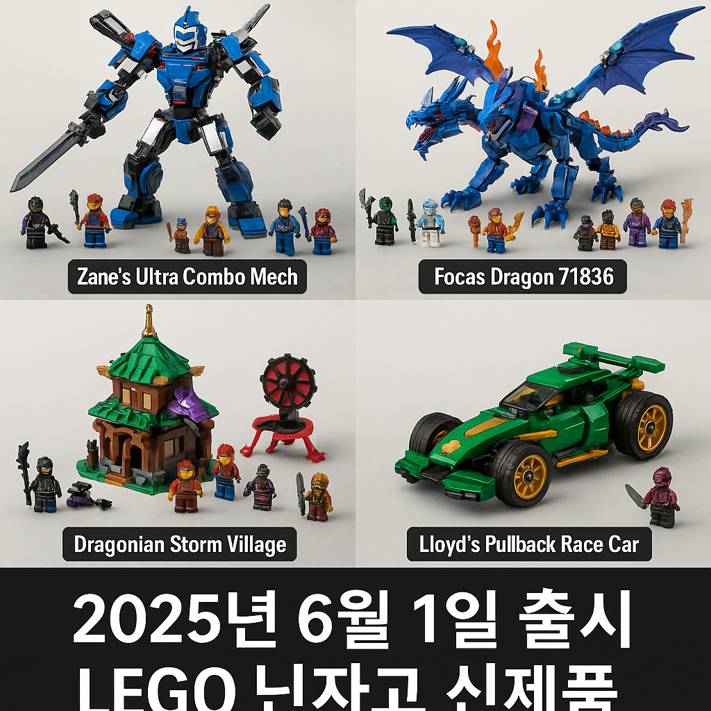 - ⚙️ 특징: 4가지 형태로 분리 가능한 합체 로봇. 관절 자유도 우수, 드래곤 윙 포함. 미니피겨 6개 포함.